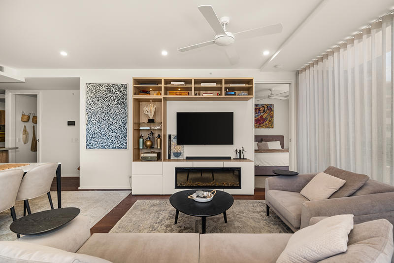 Residents enjoy access to resort-style amenities including a pool, gymnasium, private entertainment room, rooftop sky garden, plus an outdoor cinema, all just steps from the riverfront and West End's vibrant café and market scene.