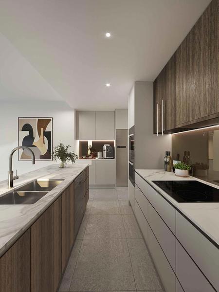 • A gourmet kitchen featuring reconstituted stone benchtops, abundant storage, and premium finishes.