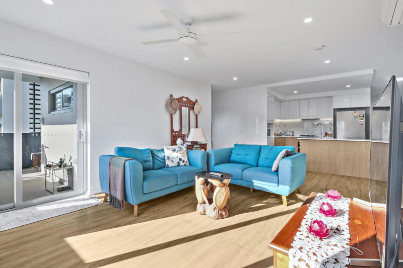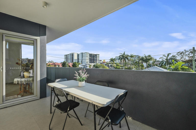 Warm timber look vinyl plank flooring flows through the open-plan living areas, while plush carpet adds comfort in both well-separated bedrooms. The sleek, designer kitchen is equipped with premium SMEG appliances, perfect for home chefs and entertainers alike. The light-filled living and dining zone opens seamlessly onto a spacious 21sqm balcony, a private, sun-drenched retreat ideal for alfresco dining, lounging, or simply enjoying the best of Brisbane's outdoor lifestyle. Stylish, spacious, and filled with natural warmth, this apartment is a standout opportunity for those seeking modern living in a quality-built residence.