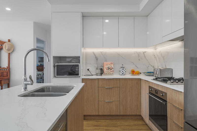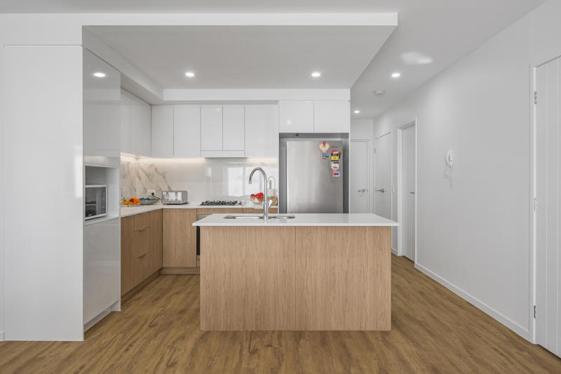 - Fresh timber look vinyl plank flooring throughout the open plan living area leads to spacious 21sqm balcony, perfect for entertaining or relaxing