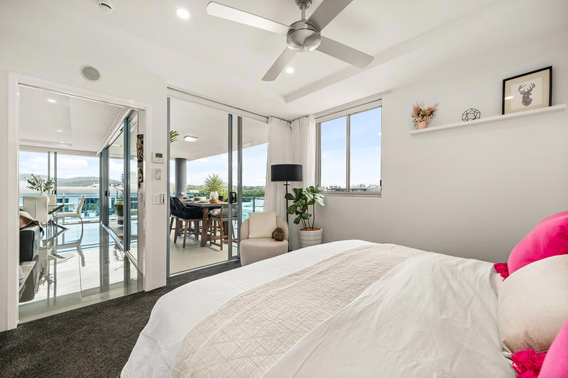 - The main suite offers direct balcony access, a spacious walk-through robe, and a fully renovated ensuite, exuding luxury, featuring a dual vanity and elegant golden finishes, delivering an unparalleled level of sophistication.