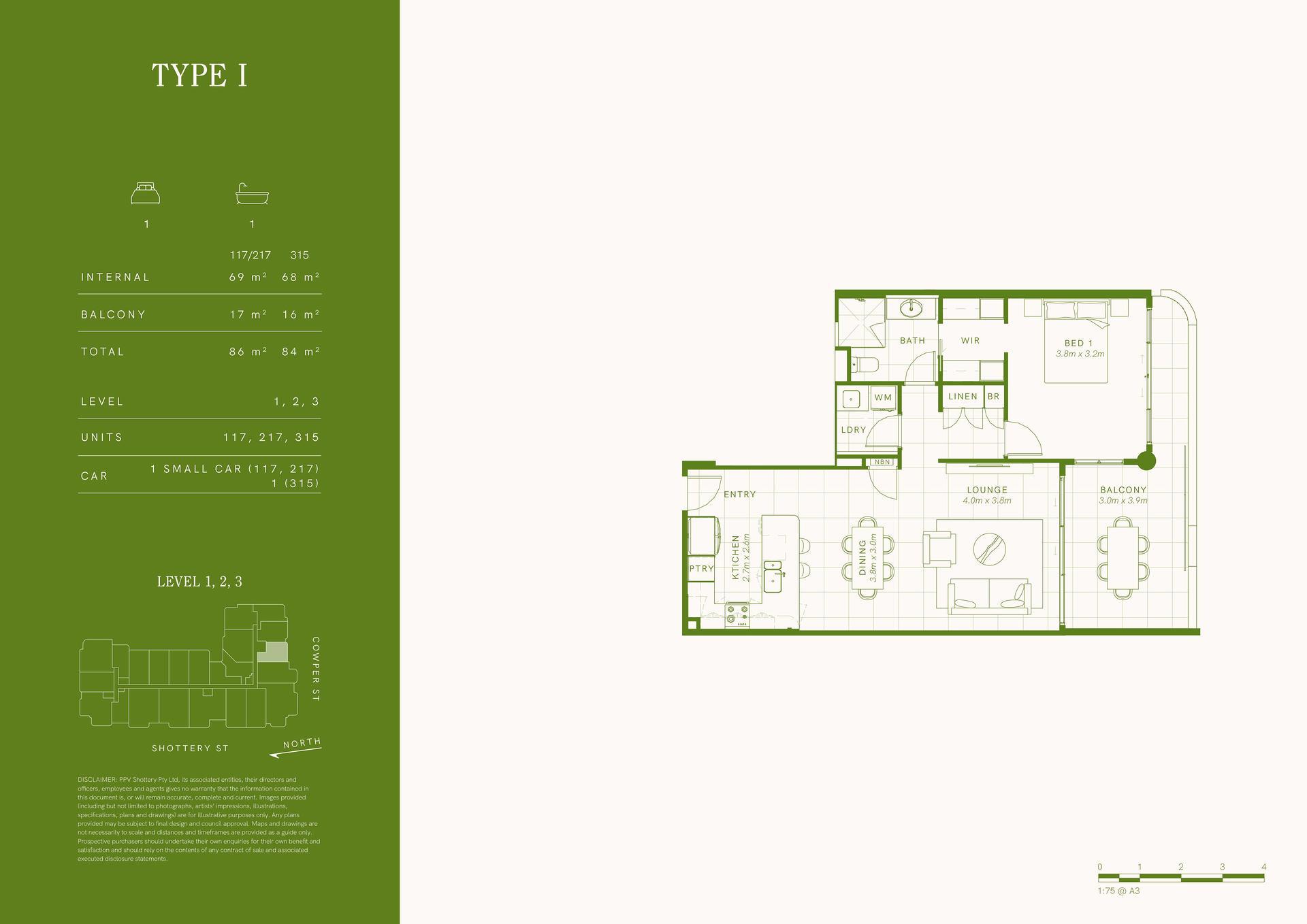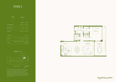 Located on Level 1, Residence 117 features an oversized interior larger than many 2 bedroom options that extends to a private balcony, creating a seamless flow between indoor and outdoor spaces. The open-plan living area is designed for both relaxation and entertaining.