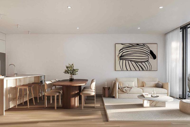 > Seamless Indoor-Outdoor Flow – An open-plan living and dining space spills out onto a generous 30sqm terrace, ideal for morning coffee, relaxed entertaining, or unwinding in the open air.