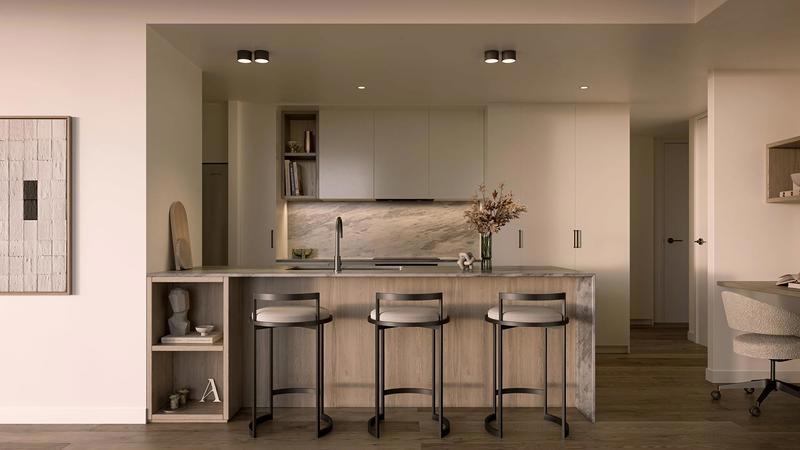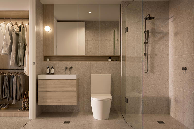 Perfectly positioned on the south-east corner, Apartment 242 welcomes abundant morning light and enjoys calming, elevated suburban views.