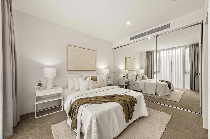 -Bedroom 2 featuring mirrored robes for added elegance and storage.