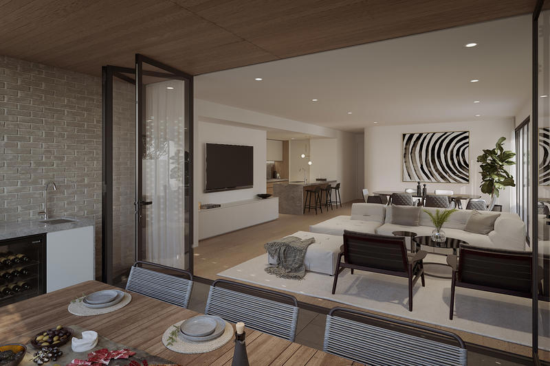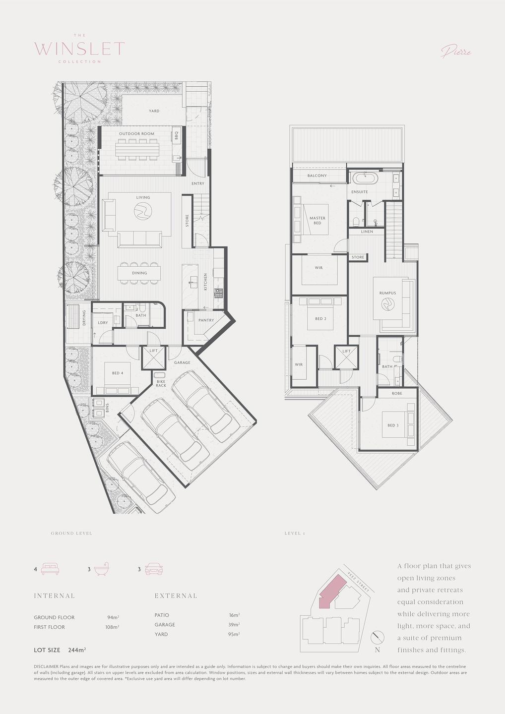 Introducing PIERRE, a generous four-bedroom residence with high ceilings and large aperture glazing, a private in-home elevator, 3 car accommodation and easy maintenance courtyard garden that is an open-air extension to the interior of the home.