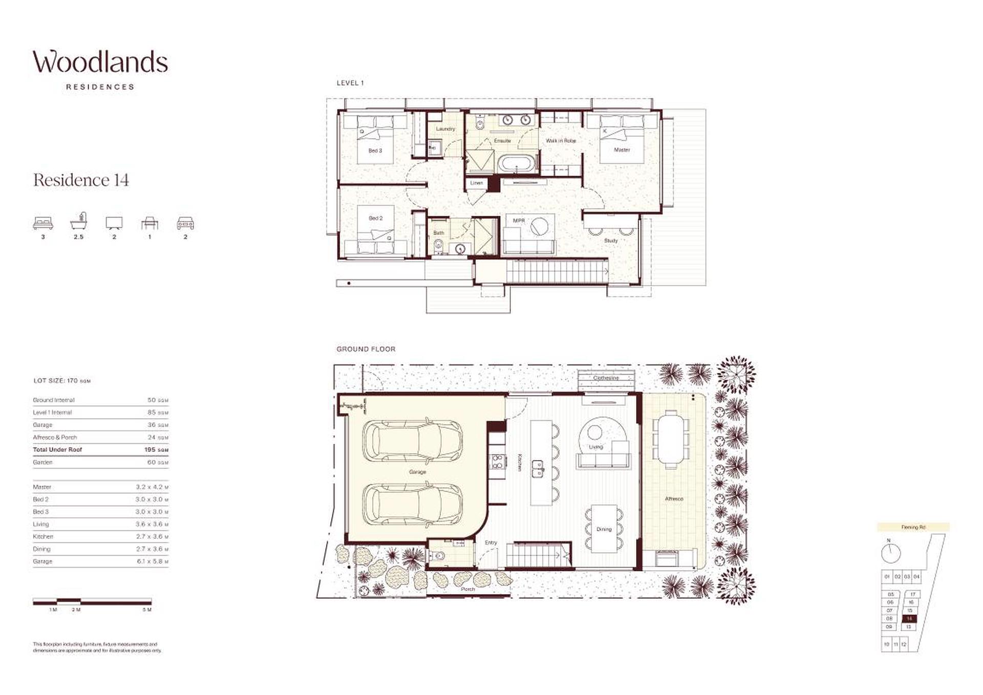 This spacious 195 sqm home, spread across two levels, is located on a sought-after corner lot with a peaceful Eastern-facing outlook into protected bushland. Residence 14 boasts three bedrooms, two distinct living areas plus a dedicated study, 2.5 bathrooms, and a generous double lock-up garage.
