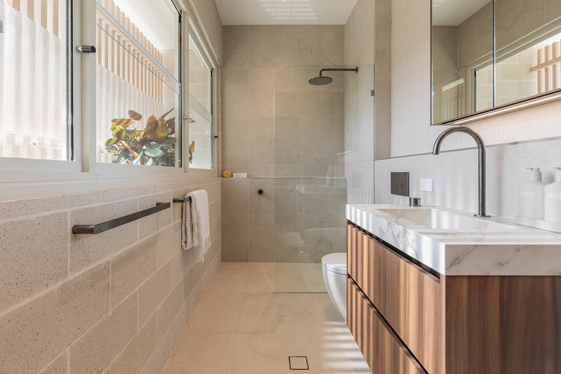 • Designer bathrooms with Toto Neorest bidets, Fienza bath, Abi Milani tapware, and Japanese tiles