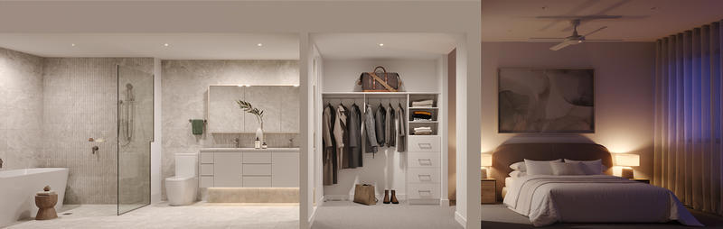 A spacious sanctuary with its own balcony access, walk-in robe, and a designer ensuite featuring a freestanding bath, twin vanity, and separate shower.