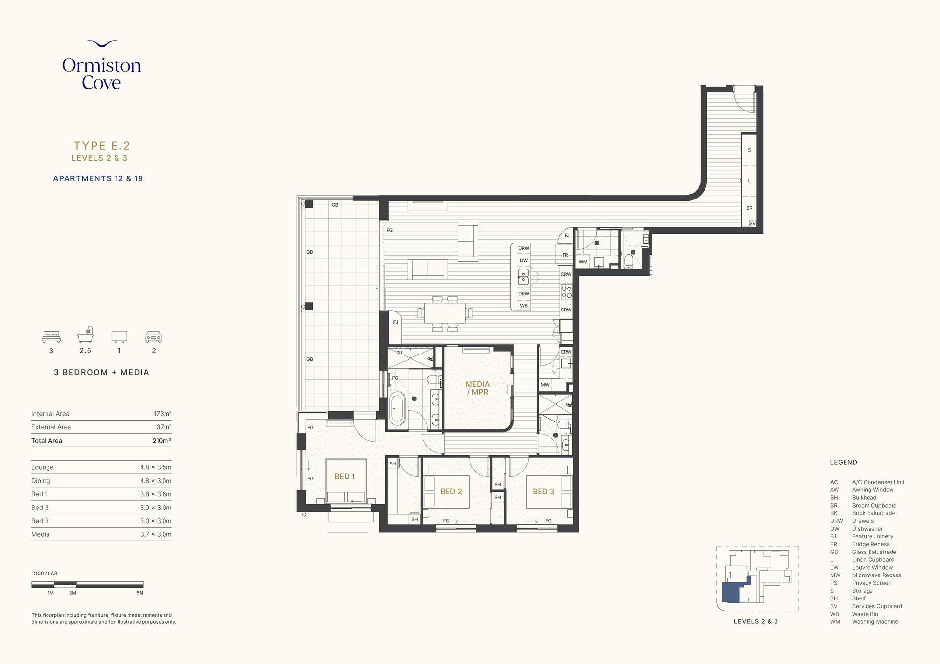 173sqm Internal + 37sqm Balcony - A rare offering with expansive living, dining, and entertaining zones. The north-facing position floods the home with light while offering unmatched privacy and permanent views.