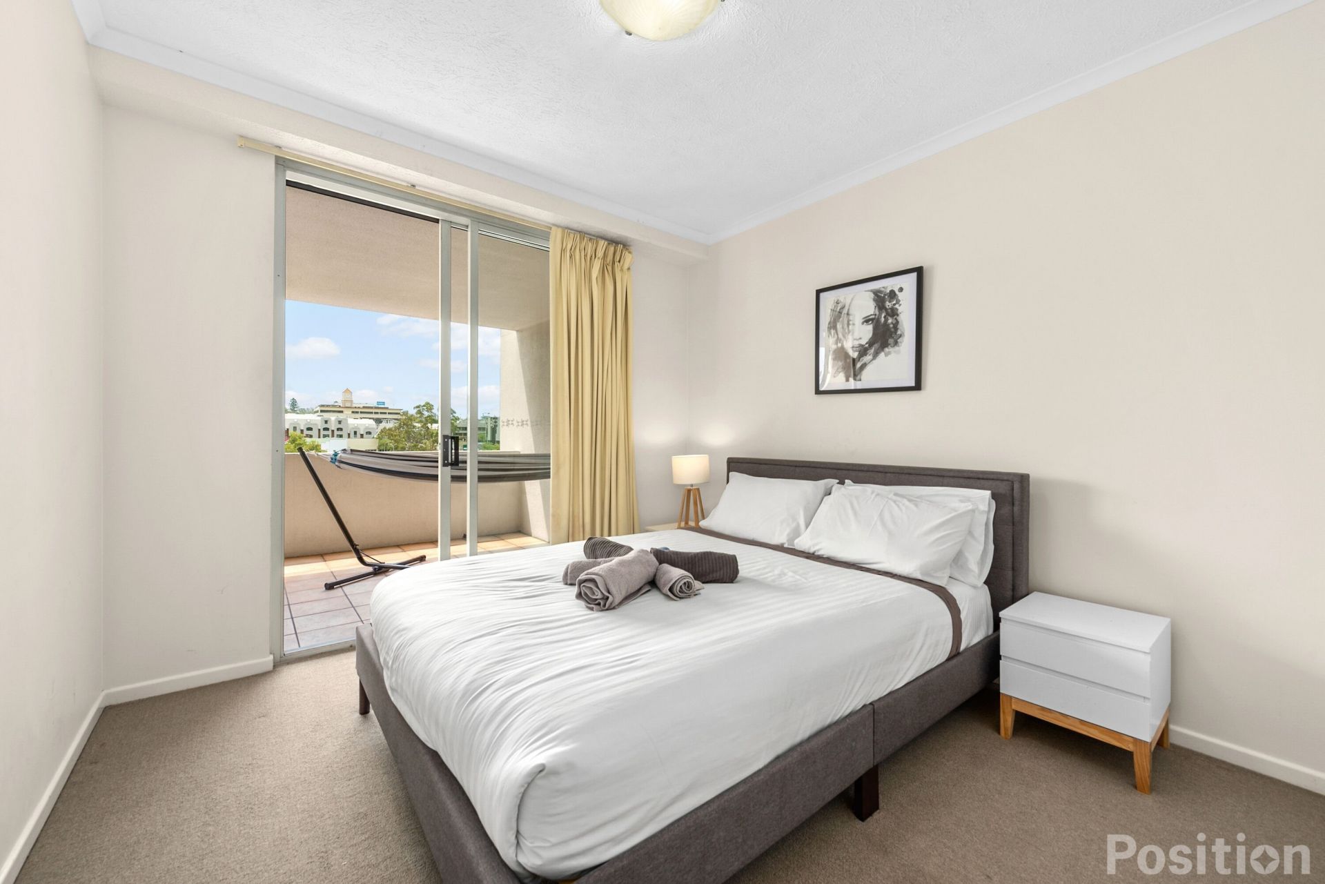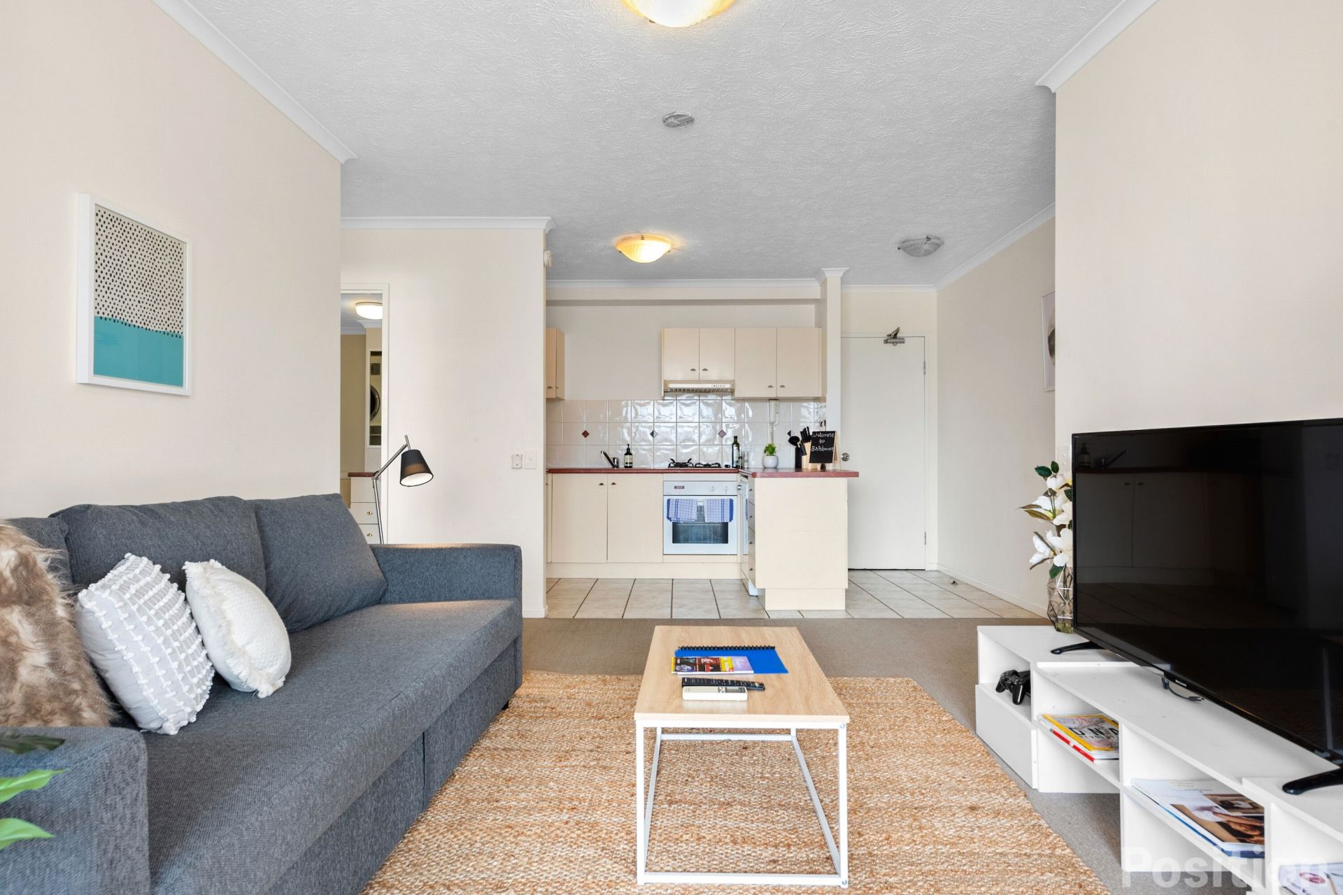 - Open plan living/dining which flows seamlessly onto the generous balcony overlooking Centenary Place Parklands