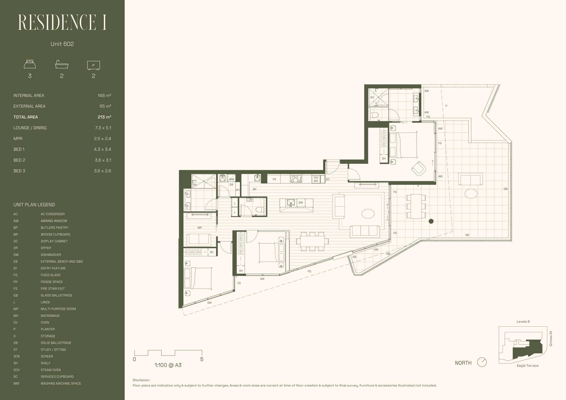 > Prime north-east facing corner residence with floor-to-ceiling glazing, offering uninterrupted city and neighbourhood views from a spacious 65m2 balcony.