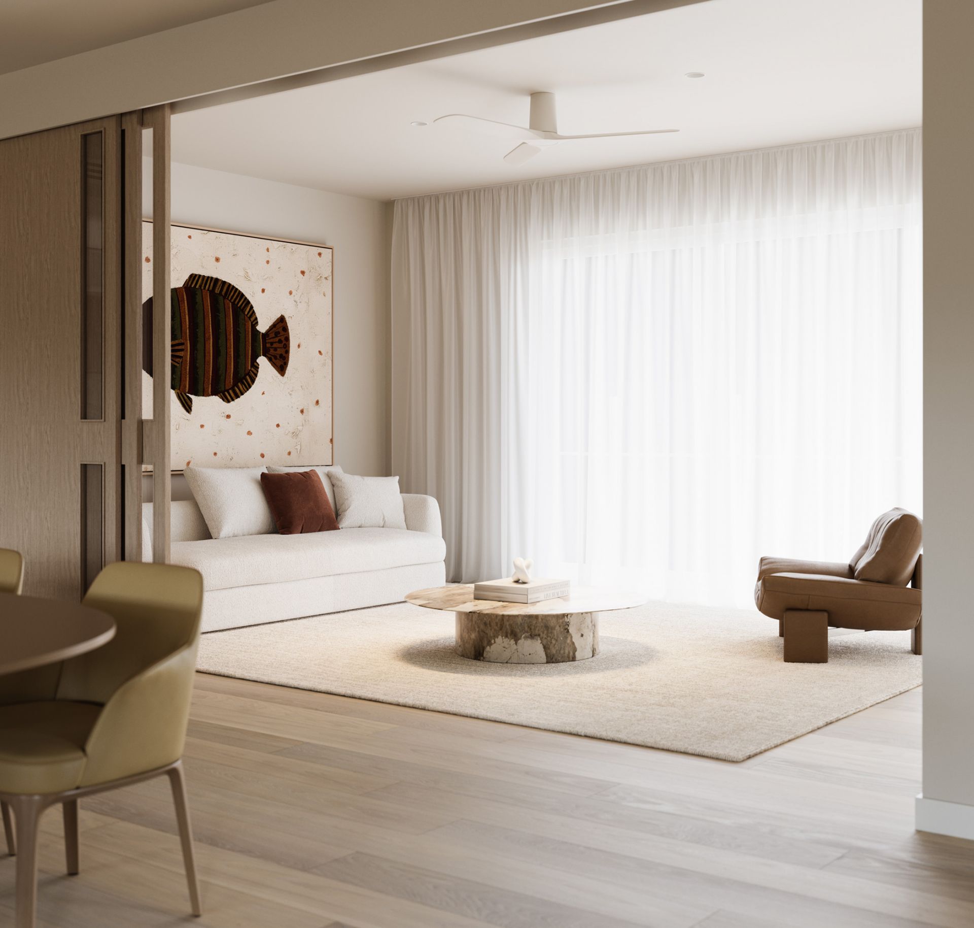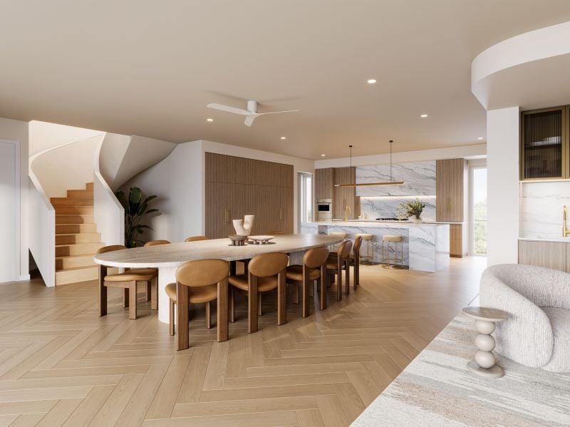 Positioned on the fourth level and commanding an impressive triple frontage with over 14 metres of street presence, Signature Lot Eight is a refined 272m² home designed for those who appreciate scale, privacy and architectural sophistication. Bathed in natural light and capturing leafy local outlooks, this home delivers exceptional cross-ventilation and an elevated sense of space.