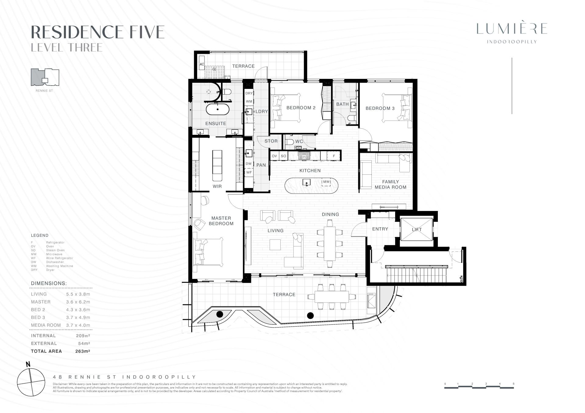 Positioned on the third floor and enjoying an idyllic triple frontage with over 14 metres of street presence, Signature Lot Five is a refined 263m² home delivering exceptional natural light, cross-ventilation and leafy local outlooks. Elevated and private, this home combines house-like proportions with sophisticated apartment living.