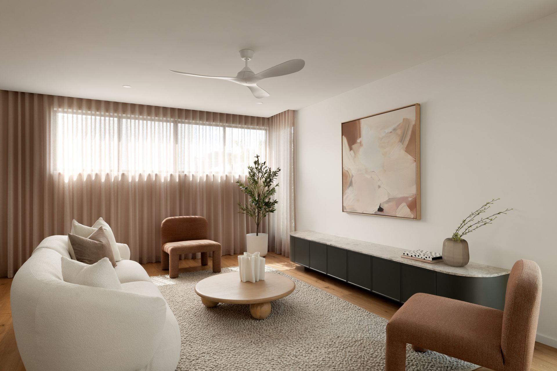 The rooftop level delivers the ultimate lifestyle statement, with sweeping city views, Tait Tilt BBQ, and pool – perfect for vibrant entertaining or relaxed evenings. The upper level is the residence's true centrepiece, featuring a chef's kitchen with premium Bosch appliances, induction cooktop, stone benchtops, and butler's pantry, flowing seamlessly into an expansive living and dining space. The statement master suite is an opulent retreat, with a private balcony, walk-in wardrobe, and ensuite with terrazzo flooring, dual showerheads, and inset bath.