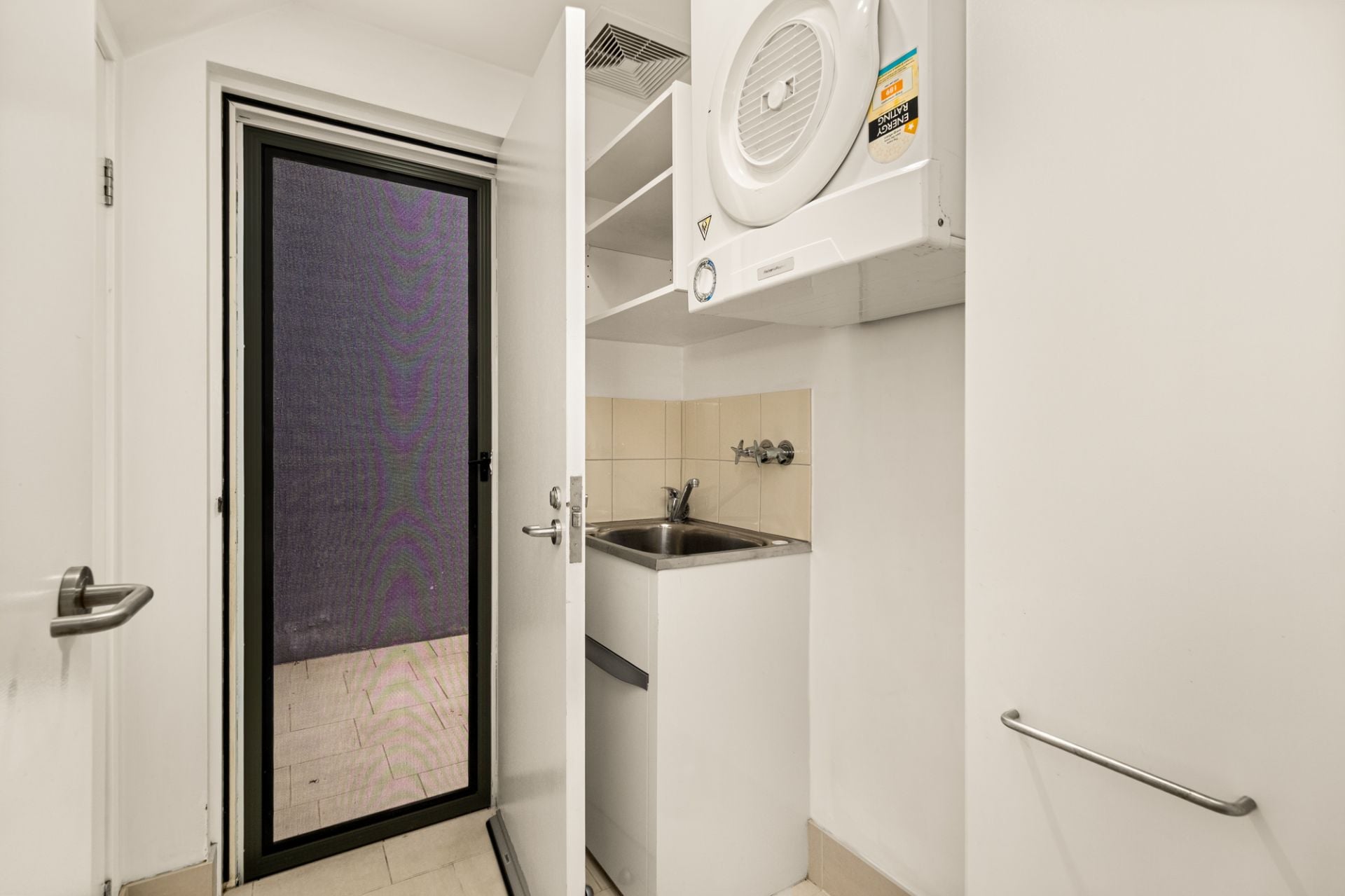 - Additional conveniences include a separate laundry, high ceilings, and ample storage, including under-stair storage.
