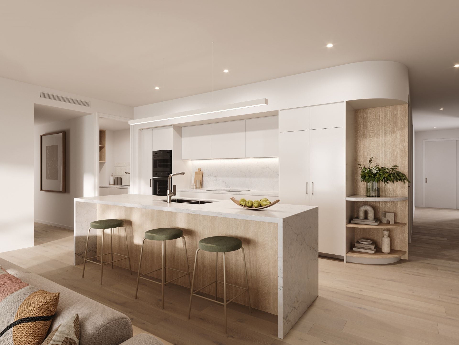 A key strength of Apartment 18 is its thoughtful zoning. All three bedrooms are privately positioned away from the main living domain, creating genuine separation between entertaining and rest. The master suite offers a walk-in robe and beautifully finished ensuite, while bedrooms 2 and 3 are generously proportioned and serviced by a stylish main bathroom and powder room.