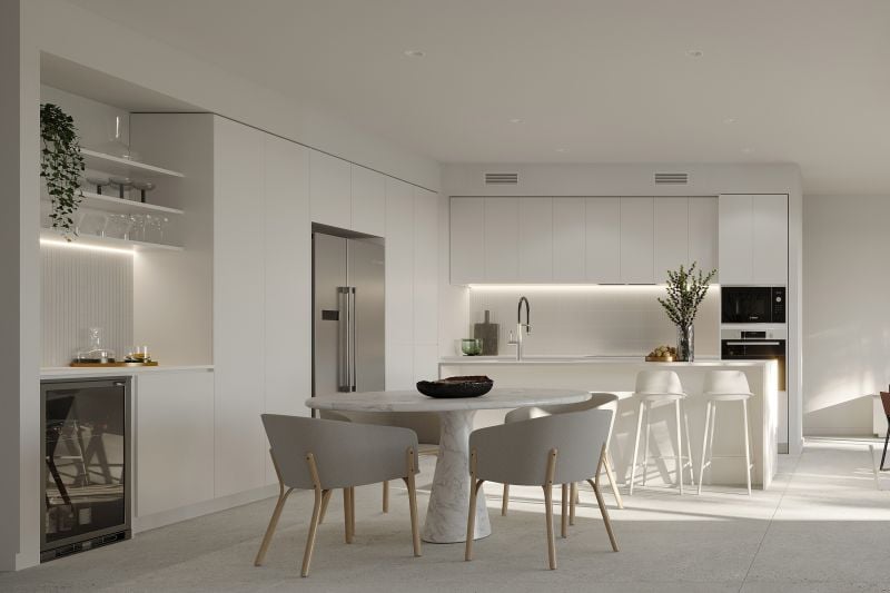 • Modern kitchen equipped with Bosch appliances and stone benchtops